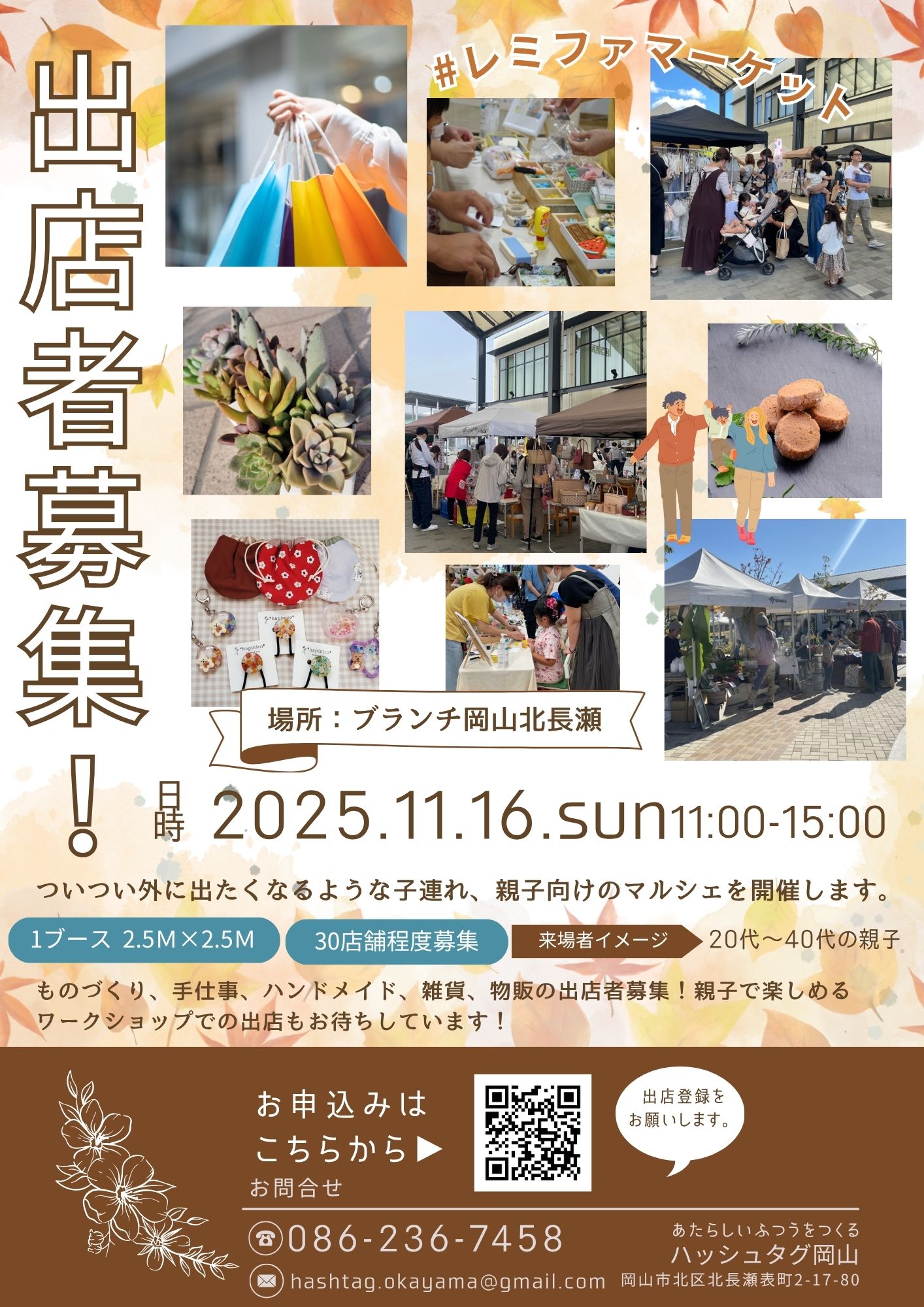 ブランチ岡山北長瀬で「レミファマーケット」を開催するにあたり、出店者の方を大募集しております!