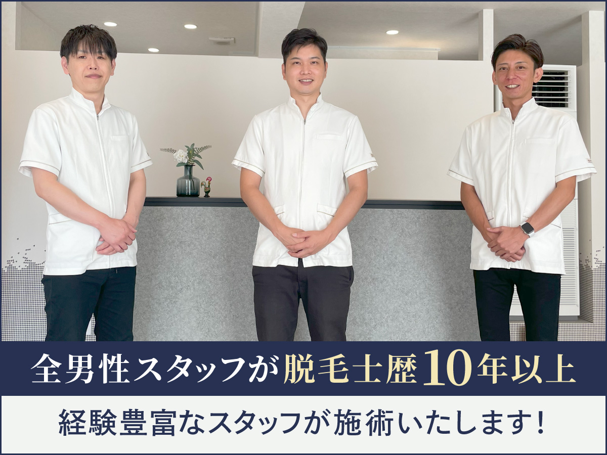 当サロンは岡山で最初の“男性専門”脱毛店です。私たちの強みは、お客様それぞれの「毛の悩み」に寄り添い、最適なプランを丁寧にご提案できることです!無理な勧誘、引き留めは一切いたしません。また、地域密着サロンだからこそ安心の保証も充実◎無料カウンセリングでは、他店にも熟知したスタッフが脱毛あるあるや裏事情などもお答えしますのでどんなことでもお気軽にご相談下さい!