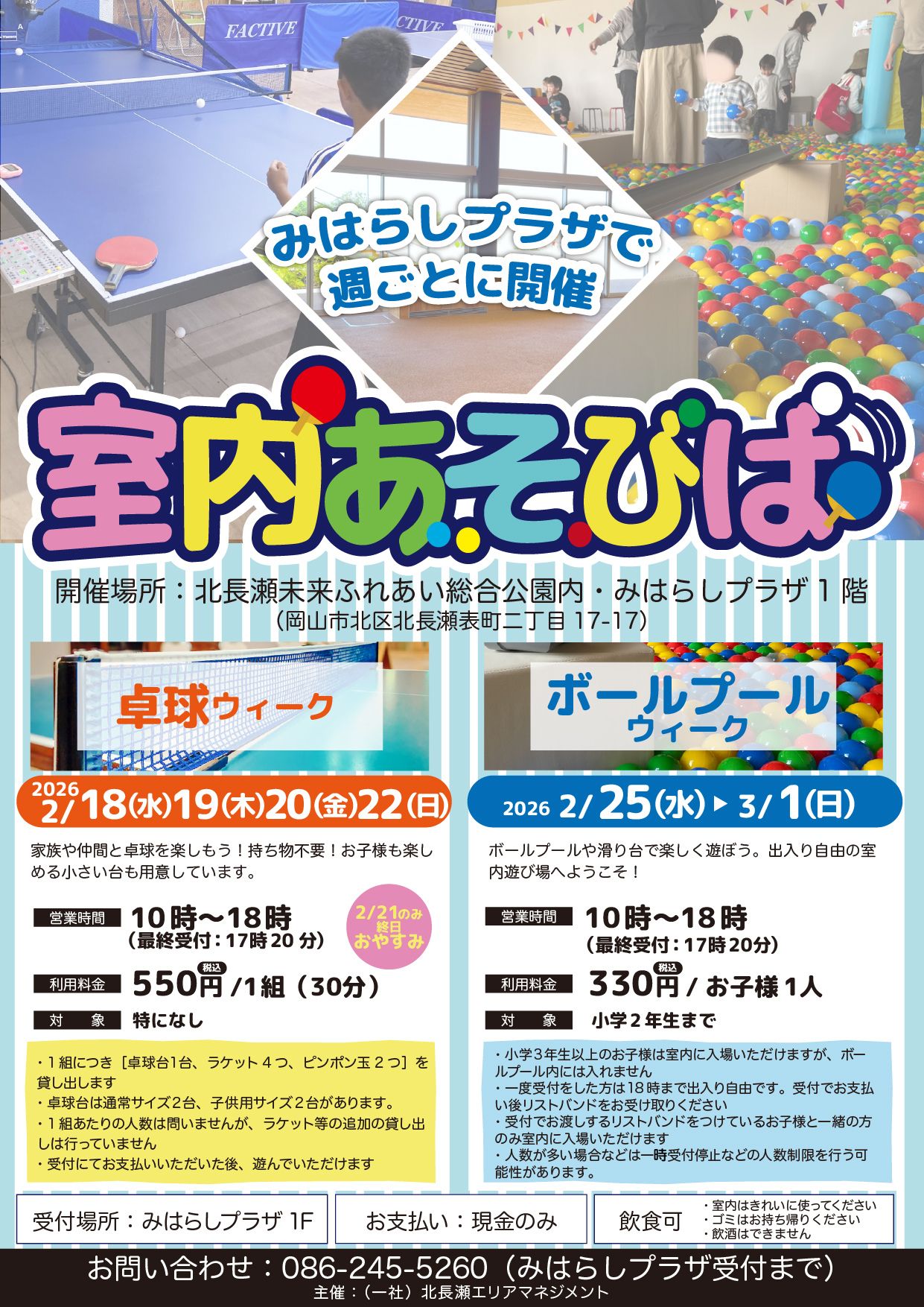 週ごとに卓球やボールプールなどのイベントを開催します!